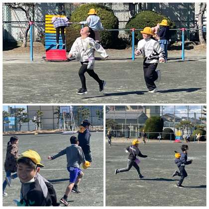 今日の午前の長放課のようすスナップです。なわとびやドッジボール、おにごっこ、遊具遊びなどで楽しい時間を過ごすことができましたね。