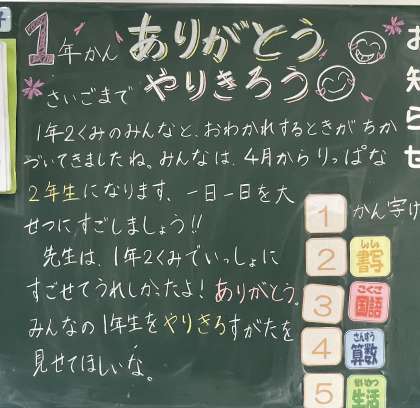 3月4日(月) ありがとう・やりきろう【1年黒板メッセージ】