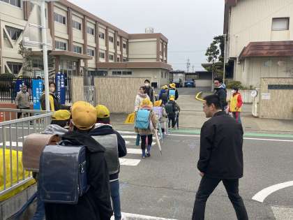 今朝の見守り活動のようすスナップです。年長さんもお母さんと一緒に活動に参加してくれていました。ありがとうございました。4月に入学してきてくれるのを楽しみにしていますよ!