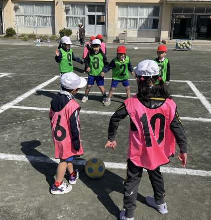 4月7日(木) 1年 パスゲーム対決 公開日 2024/03/07 更新日 2024/03/07 1年 1年生の1組と3組の体育のようすスナップです。チームに分かれてパスゲームを楽しく進めることができましたね。