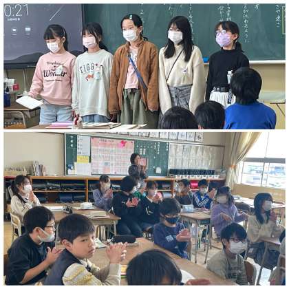 3月8日(金) 4年 調べて話そう 生活調査隊! 公開日 2024/03/08 更新日 2024/03/08 4年 4年生の国語の授業のようすです。グループごとにテーマを決めて調べたことをまとめ、声の大きさや速さ、間のとり方を工夫して発表しました。資料を示しながらわかりやすく話すことができましたね。
