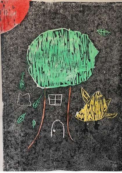 4年生の図工の授業「ほってすって見つけて」の作品の一部をウェブ展覧会で紹介します。版画板を彫刻刀でほり進めて何を表現しているかイメージしながらお楽しみください。