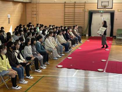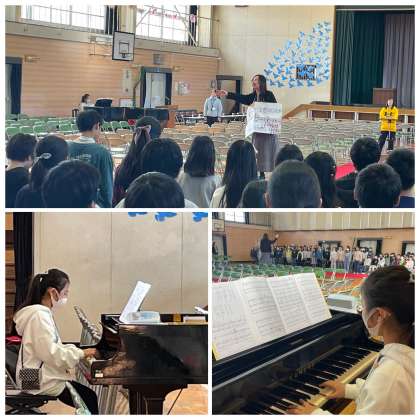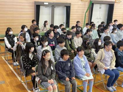 5年生の学年音楽の授業のようすです。とても美しい歌声が体育館いっぱいに広がっていました。