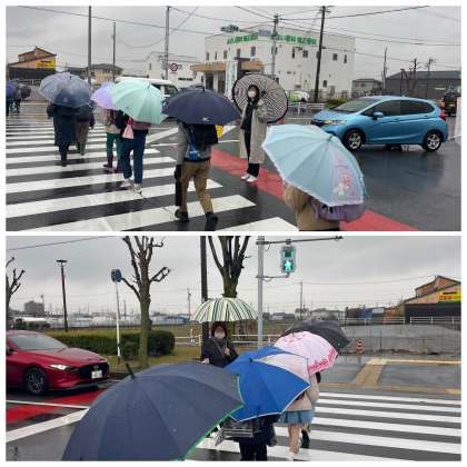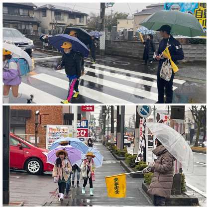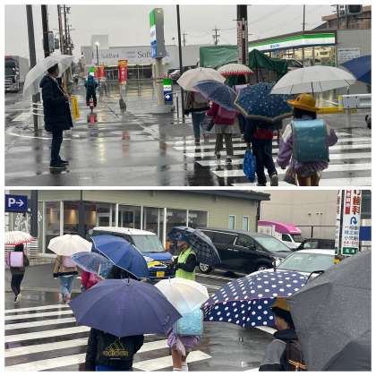 3月12日(火) 見守りありがとうございます! 公開日 2024/03/12 更新日 2024/03/12 PTA 冷たい雨の朝になりました。校区の交差点では、PTA旗ボランティアさんや地域見守り隊のみなさんが、雨にぬれながら子どもたちにあたたかい声をかけながら横断のサポートをしてくださいました。おかげで無事登校を完了することができました。ありがとうございました!