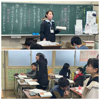 5年生の国語の授業のようすです。「物語の山場はどこかを考えよう」というめあてで学習を進めていました。グループで意見交換しながら物語の山場にせまっていきました。
