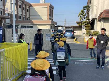 3月14日(木) 見守りありがとうございます! 公開日 2024/03/14 更新日 2024/03/14 PTA 今朝の見守り活動のようすです。PTA旗ボランティアさんや地域見守り隊のみなさんが早くから担当場所に立ち、子どもたちの横断をサポートしてくださいました。今年度の登校日もあと5日となりました。笑顔で安全に登校できますように、引き続きよろしくお願いいたします。