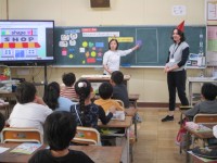 3年2組のハーモニータイムのようすです。担任の先生と一緒に元気に校歌を歌いました!