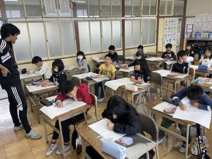 5月1日(水) 3-2 あの日 あの時の気もち 公開日 2024/05/01 更新日 2024/05/01 3年 3年2組の図工の授業のようすです。「目を描こう」というめあてで、写生会の絵に取り組んでいました。