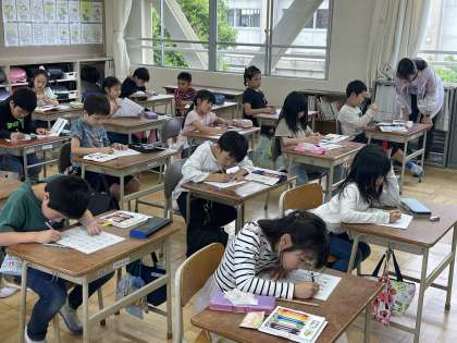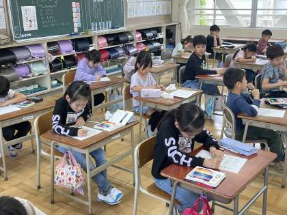 5月1日(水) 2年 きれいに色づけしよう 公開日 2024/05/01 更新日 2024/05/01 2年 2年生の図工の授業のようすです。写生会の絵の練習が終わった人から草花のイラストにていねいに色づけする練習に取り組んでいました。