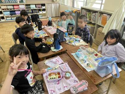 5月1日(水) 2年 お弁当ありがとうございました! 公開日 2024/05/01 更新日 2024/05/01 2年 今日の昼食はおうちの人が準備してくれたお弁当でした。校外学習に出かけられませんでしたが、お弁当のおかげで笑顔がいっぱいに広がる時間になりました。ありがとうございました!