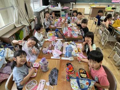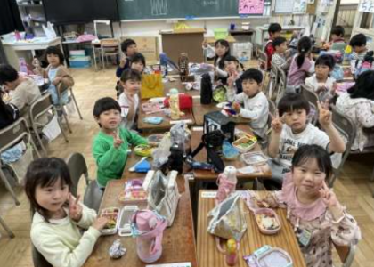5月1日(水) 1-1 お弁当ありがとうございました! 公開日 2024/05/01 更新日 2024/05/01 1年 今日の昼食はおうちの人が準備してくれたお弁当でした。校外学習に出かけられませんでしたが、お弁当のおかげで笑顔がいっぱいに広がる時間になりました。ありがとうございました!