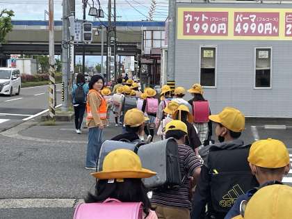 花池方面では、写真の方が新しく地域見守り隊に加わって子どもたちの安全をサポートしていただいています。場所は、とんかつ屋さんの交差点かソフトバンク横の横断歩道で、PTA旗ボランティアさんが立たれない方で活動していただいています。今日は子どもたちが通過した後、通学班と一緒に学校まで付き添い登校もしてくださっていました。感謝感謝です。ありがとうございました!