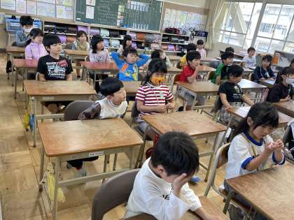 5月3日(金・祝) 2-2 おにいさん、おねえさんとして 公開日 2024/05/03 更新日 2024/05/03 2年 2年2組の昨日の生活科の授業のようすです。「おにいさん、おねえさんとして、1年生と学校たんけんをしよう」というめあてで、1年生の子らにどんな心配りをするとよいか学んでいました。