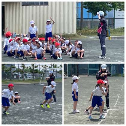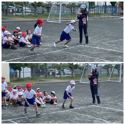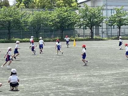 5月3日(金・祝) 2-1 ようい!ドン!! 公開日 2024/05/03 更新日 2024/05/03 2年 2年1組の体育の授業のようすです。短距離走の練習をしていました。先生の合図で力強くスタートを切ることができましたね。後半は体にタグをつけて取り合うゲームを楽しみました。いっぱい走って体を動かせましたね。
