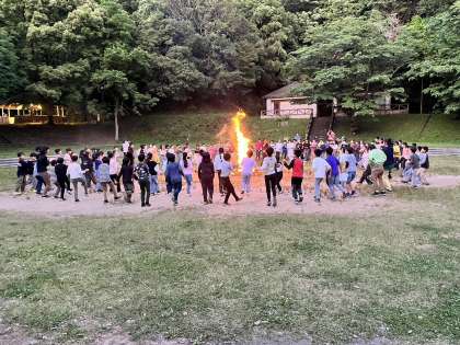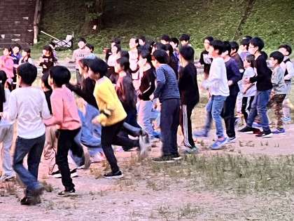 キャンプファイヤーのようすスナップです!「フォークダンス」や「もうじゅう狩りゲーム」で大いに盛り上がりました。