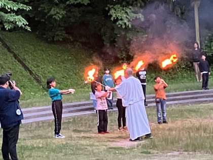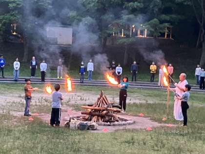 5月26日(日) 5年思い出【キャンプファイヤー】 公開日 2024/05/26 更新日 2024/05/26 5年 キャンプファイヤーのようすスナップです!「フォークダンス」や「もうじゅう狩りゲーム」で大いに盛り上がりました。