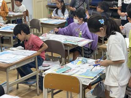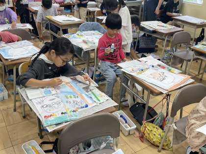 5月27日(月) 3年 あの日あの時の気もち 公開日 2024/05/27 更新日 2024/05/27 3年 3年生の図工の授業のようすです。「水のりょうに気をつけて色をぬろう」というめあてで学習を進めていました。