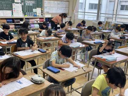 5月27日(月) 2年 かん字の書きじゅん 公開日 2024/05/27 更新日 2024/05/27 2年 2年生の書写の授業のようすです。「書きじゅんのきまりに気をつけて書こう」というめあてで学習を進めていました。「十・土・上・中・車・月」など、どの順番で書くとよいか、おうちの人にも伝えてみましょう!
