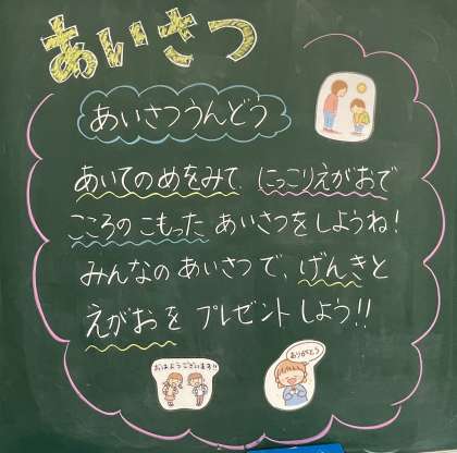 5月27日(月) あいさつうんどう【1年黒板メッセージ】