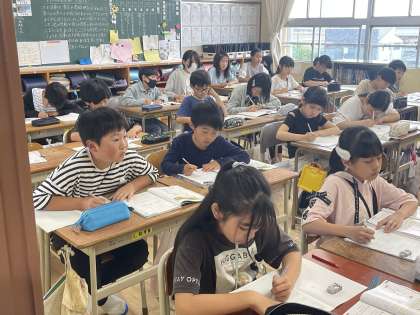5月28日(火) 5年 計算のきまり 公開日 2024/05/28 更新日 2024/05/28 5年 5年生の算数の授業のようすです。「計算のきまりが小数でも成り立つか調べよう」というめあてで学習を進めていました。