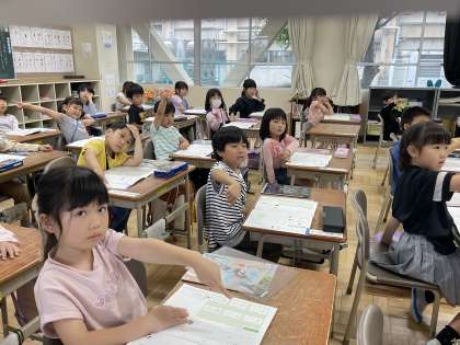 5月28日(火) 1年 せんのおわりのかきかた 公開日 2024/05/28 更新日 2024/05/28 1年 1年生の書写の授業のようすです。「とめるところと、はらうところにきをつけてかこう」というめあてで『くつ』の文字を書きました。