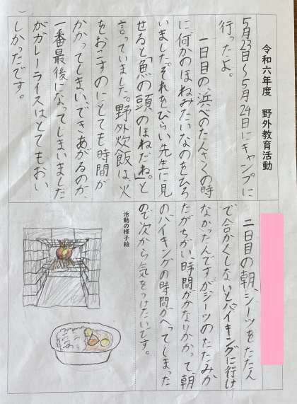 6月6日(木) 5年ウェブ展覧会「野外教育活動」 公開日 2024/06/06 更新日 2024/06/06 5年 5年生の教室の掲示物を紹介します。野外教育活動の感想です。どんな感想をもち、自分の成長につなげようとしてくれているかな。