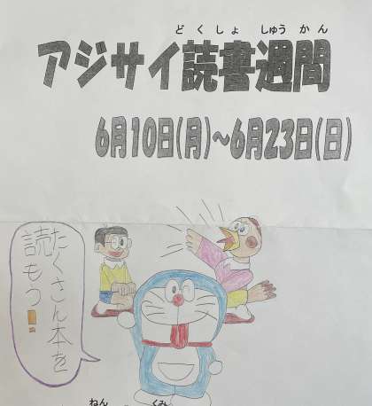 6年生の子が作ってくれた「アジサイ読書週間」のポスターを紹介します!