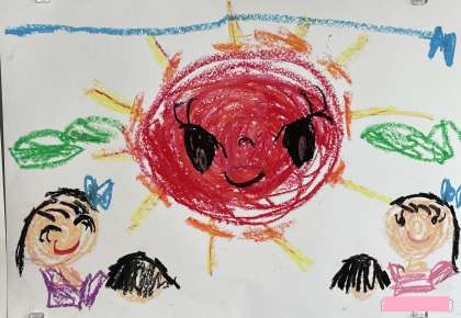 6月3日(月) 1年ウェブ展覧会「わたしのおひさま」 公開日 2024/06/03 更新日 2024/06/03 1年 1年生の廊下の掲示物を紹介します。自分だけのおひさまを思い浮かべ、色や形を考えて楽しみながら絵に表しましたよ!描いているときの様子を想像しながらご覧ください。