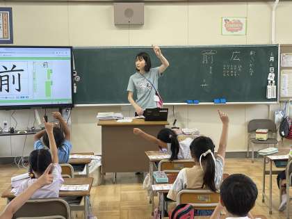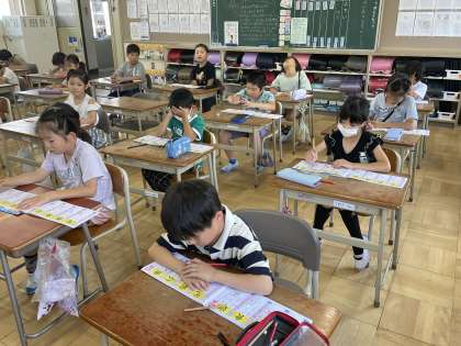 2年生の国語の授業のようすです。「あたらしいかん字をおぼえよう」というめあてで学習を進めていました。読み方や書き順、意味などを確認し、ていねいに書く練習をすることができましたね。
