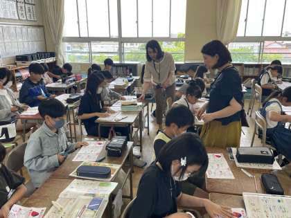 5年生の家庭科の授業のようすです。「さいほうの準備をしよう」というめあてで学習を進めていました。手縫いでどんな作品ができるのか楽しみですね。