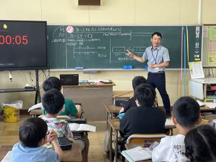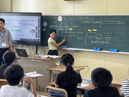 6月6日(木) 5年 小数の計算 公開日 2024/06/06 更新日 2024/06/06 5年 5年生の算数の授業のようすです。「96÷2.4の式になるわけを考えよう」というめあてで学習を進めていました。友達の考えた図をつかってどのように説明できるか熱心に考えて発表し、理解を深めていきました。