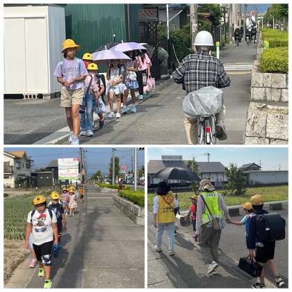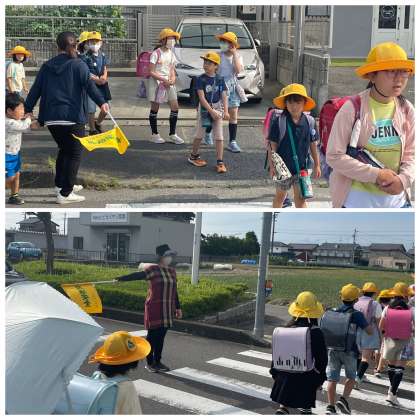週末の朝を迎えました。今日の見守り活動のようすスナップです。早くからPTA旗ボランティアさんや地域見守り隊のみなさんが担当場所に立ち、子どもたちの安全のサポートをしていただきました。おかげで元気に一週間のまとめの一日を過ごすことができました。ありがとうございました!