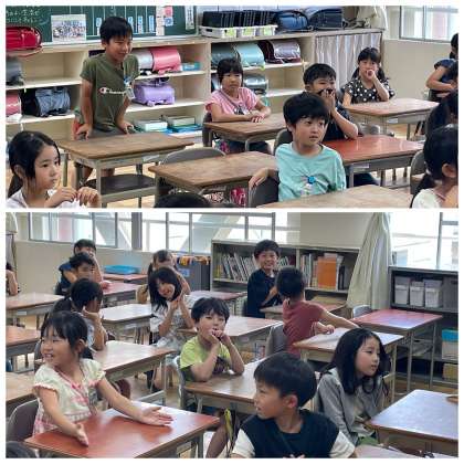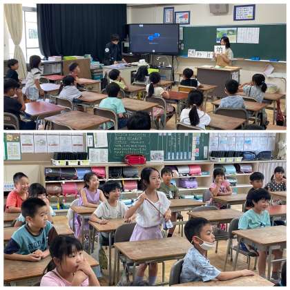6月7日(金) 2-4 司書さんと学ぼう! 公開日 2024/06/07 更新日 2024/06/07 2年 2年4組の国語の授業のようすです。司書さんのブックトークを聞きながら、漢字やことばについて楽しく学んでいました。