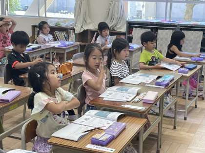 6月10日(月) 1年 あわせていくつ 公開日 2024/06/10 更新日 2024/06/10 1年 1年生の算数の授業のようすです。「『あわせていくつ』をことばやしきであらわそう」というめあてで学習を進めていました。「+」や「=」を使った式の書き方がよくわかりましたね。