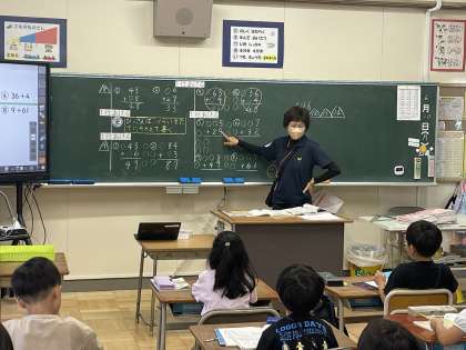 6月10日(月) 2年 たしざんのひっさん 公開日 2024/06/10 更新日 2024/06/10 2年 2年生の算数の授業のようすです。たし算の筆算の計算練習に取り組みました。「たしざんのひっさんは、くらいをたてにそろえて書く」ことをみんなでまとめました。