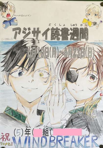 6月10日(月) 5年ウェブ展覧会「アジサイ読書週間ポスター」