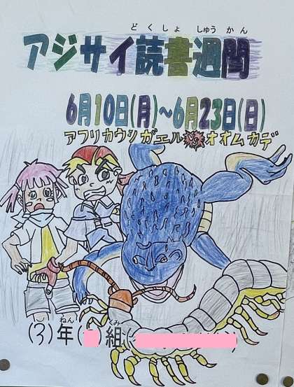 図書館の廊下に掲示されている「アジサイ読書週間ポスター」を紹介します!