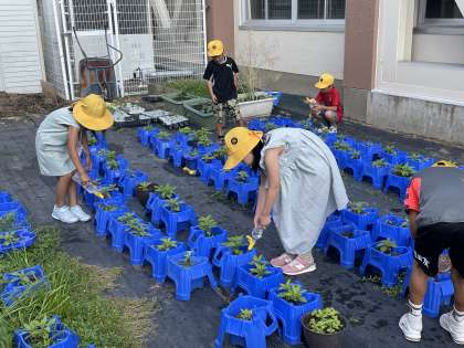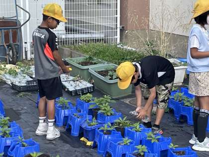 3年生の朝の中庭のようすです。水やりペットボトルをもってたくさんの子らがホウセンカのお世話に集まってきます。今日はどんな変化を発見できたかな。少しずつ大きく成長していく姿が確認できてとてもうれしそうです。