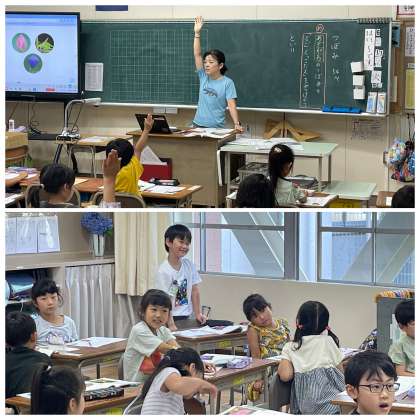 6月11日(火) 1-4 つぼみ 公開日 2024/06/11 更新日 2024/06/11 1年 1年4組の国語の授業のようすです。「あさがおのつぼみの『とい』と『こたえ』をみつけよう」というめあてで学習を進めていました。うまく見つけることができましたね。