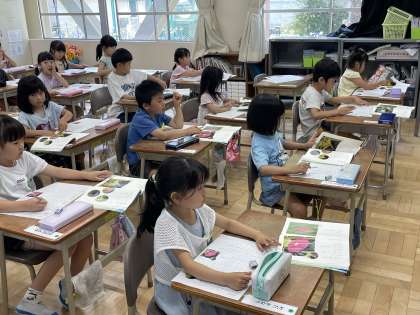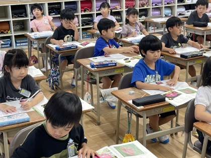 1年2組の国語の授業のようすです。「つぼみ」の文章の中から「とい」と「こたえ」をみつけていました。じっくり読んで、答えることができましたね。