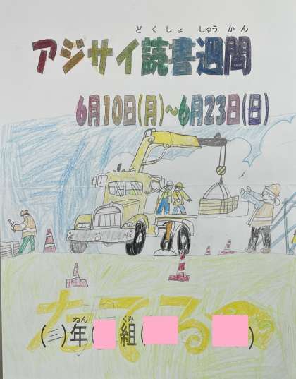 廊下に掲示されている『アジサイ読書週間』の3年生のポスターを紹介します。たくさん本を読んで、心に栄養を届ける読書週間にしましょう!