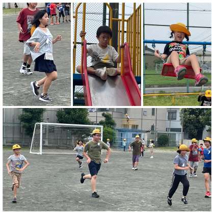 6月25日(火) 元気いっぱい!ひまわり組さんの長放課 公開日 2024/06/25 更新日 2024/06/25 ひまわり組 ひまわり組さんは今日は午後の長放課に外で遊べる日でした。ブランコやすべり台、おにごっこなどで、元気いっぱい体を動かすことができましたね。