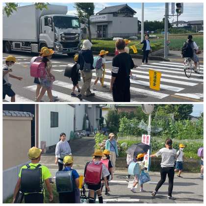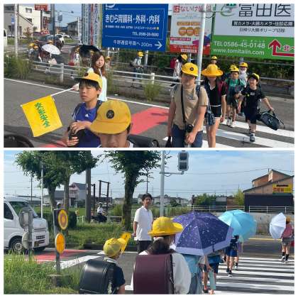 6月27日(木) 見守りありがとうございます! 公開日 2024/06/27 更新日 2024/06/27 PTA さわやかな風と厳しい日差しの両方を感じる朝になりました。校区の交差点では、早くからPTA旗ボランティアさんや地域見守り隊のみなさんが立ち、明るい笑顔で子どもたちを迎えて横断サポートをしてくださいました。おかげで今日も元気に一日のスタートをすることができました。ありがとうございました!