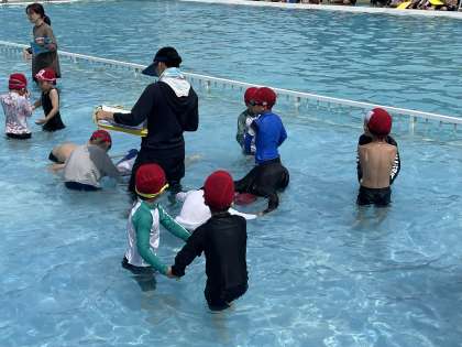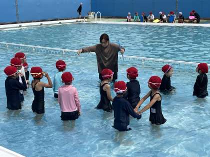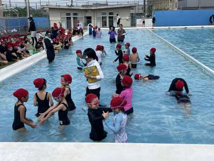 6月27日(木) 1年 楽しいプール 公開日 2024/06/27 更新日 2024/06/27 1年 1年生の学年体育の授業のようすです。プールで楽しく活動していました。水の中に顔をつけて、数をかぞえることができました。よくがんばっていましたね。