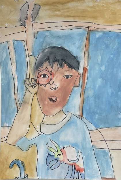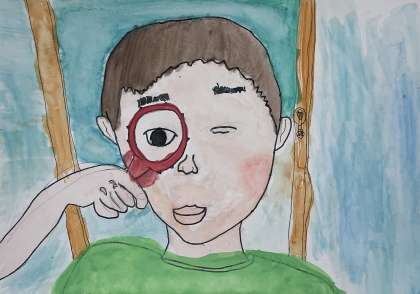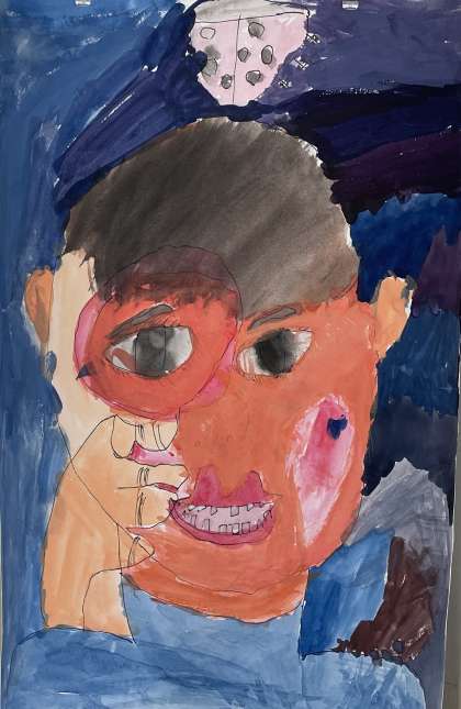 3年生は理科の授業で虫めがねを使いました。何を観察するのかワクワク!どんなふうに見えるのかドキドキ!そんな気持ちを思い出しながら描いた作品です。