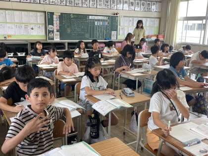 7月8日(月) 4年 小さいかさの表し方 公開日 2024/07/08 更新日 2024/07/08 4年 4年生の算数の授業のようすです。「0.1Lより小さいかさの表し方を調べよう」というめあてで学習を進めていました。