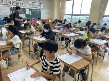 5年生の国語の授業のようすです。「みんなが使いやすいデザイン」で学んだことを確認するテストに挑戦していました。じっくり考えて答えることができましたね。