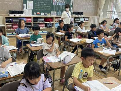 7月12日(金) 2年 1dLより小さいかさ 公開日 2024/07/12 更新日 2024/07/12 2年 2年生の算数の授業のようすです。「1dLより小さいかさのたんいをしろう」というめあてで1mLの単位の学習を進めていました。