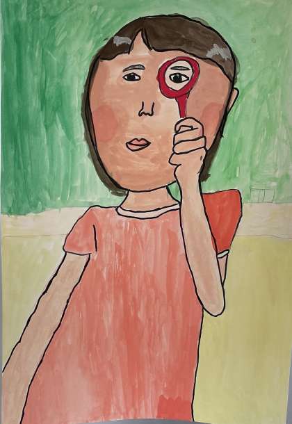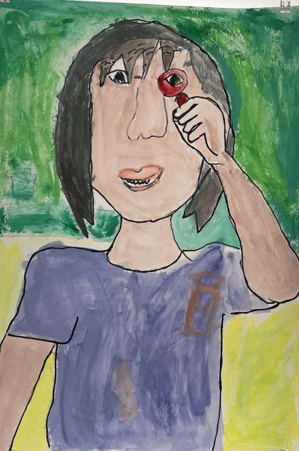 8月4日(日) 3年ウェブ展覧会【あの日あの時の気もち】 公開日 2024/08/04 更新日 2024/08/04 3年 3年生は理科の授業で虫めがねを使いました。何を観察するのかワクワク!どんなふうに見えるのかドキドキ!そんな気持ちを思い出しながら描いた作品です。