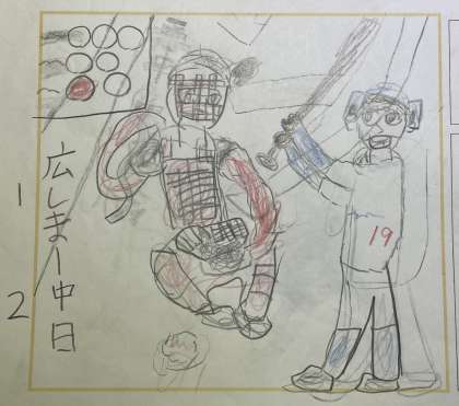 イラストの作者は3年生です。広島中日戦を観に行くのを楽しみにしているのかな。それとも、ドラゴンズの選手になることを目標にしているのかな。ドラゴンズの19番は高橋宏斗選手で先発の柱となって活躍し、野球少年のあこがれの存在ですね。